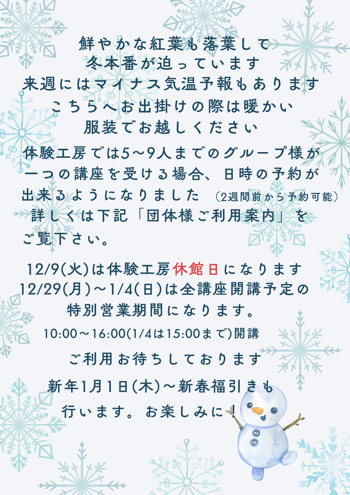 - 2025年11月1日 2025年12月定休日のお知らせ