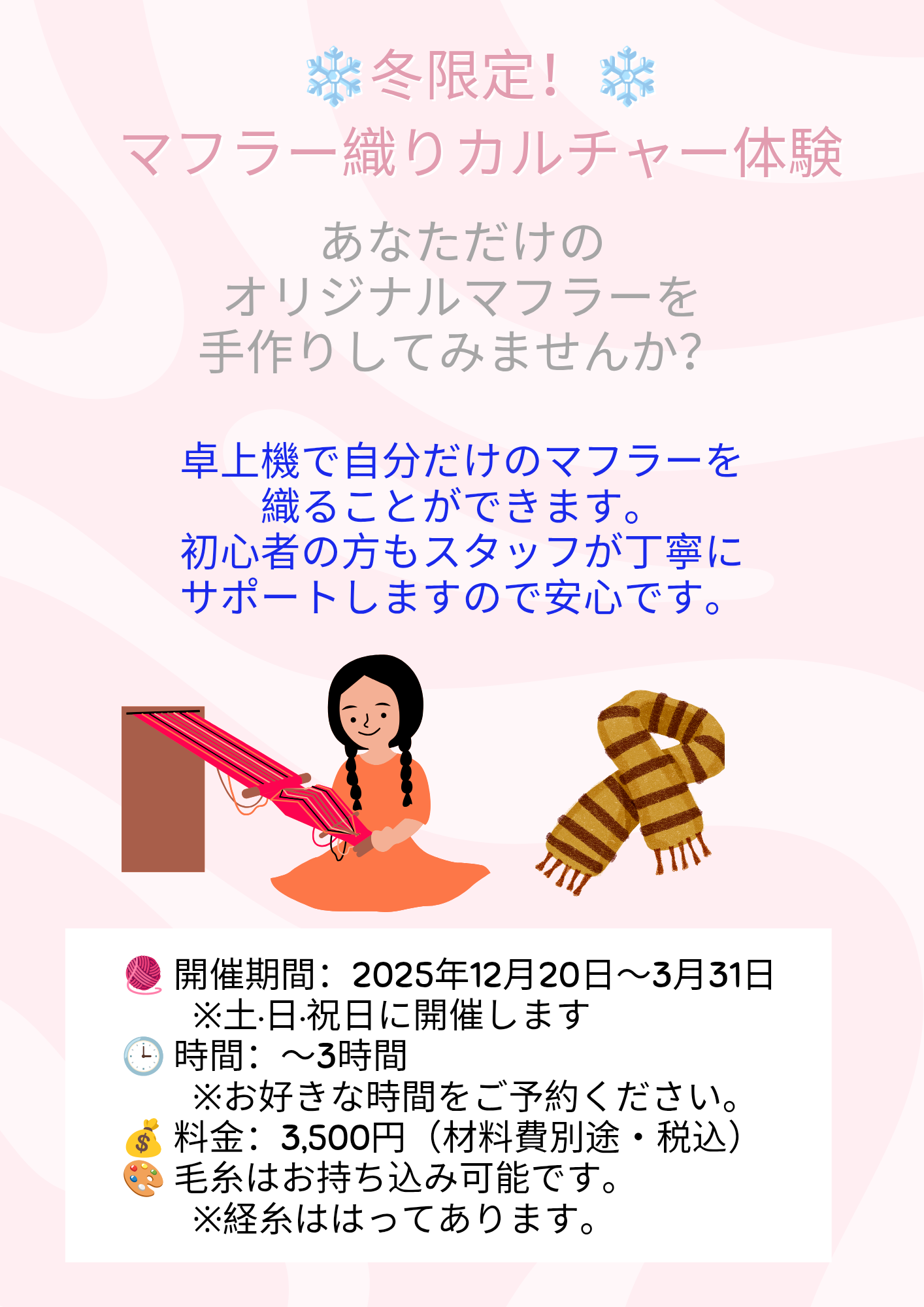 ●開催日でも団体受入れ・講師の急用で開講できない場合もありますのでご了承ください。