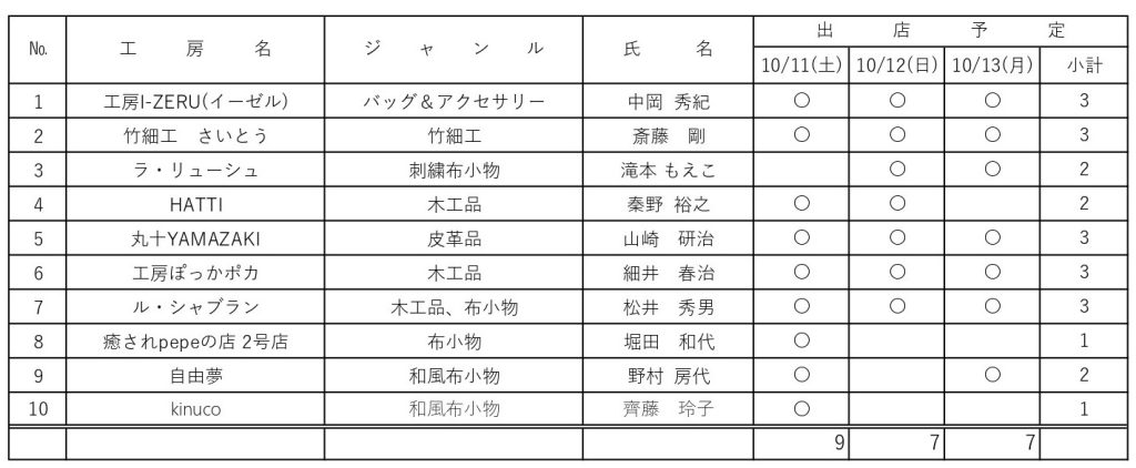毎回ご好評をいただいております「クラフト市」を、今年の秋も開催いたします!